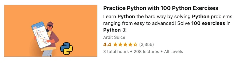 Click Here To Enroll in, 100 Python Exercises with an additional discount.
