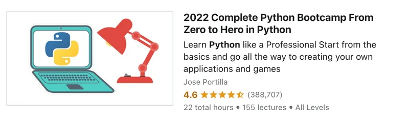 Click Here To Enroll in Complete Python Bootcamp: Go From Zero To Hero In Python 3 with an additional discount.