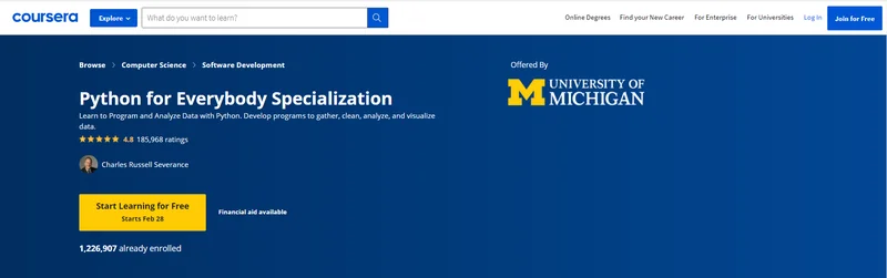 Click here to enrol in Python for Everybody Specialization with an additional discount.