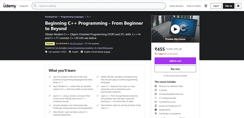 Click here to Enroll in Beginning C++ Programming – From Beginner to Beyond Course with an additional discount.