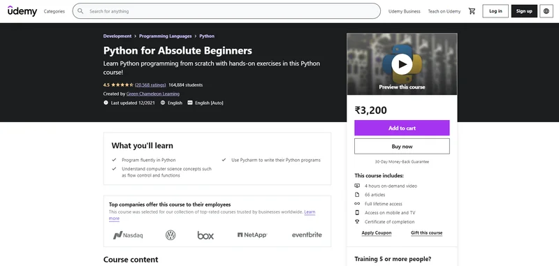 Click here to Enrol in Python for Absolute Beginners Course with an additional discount.