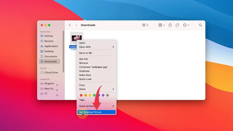 1) In Finder open up the image you want to set as desktop wallpaper, right-click on the image and select Set Desktop Picture option and you’re all done.