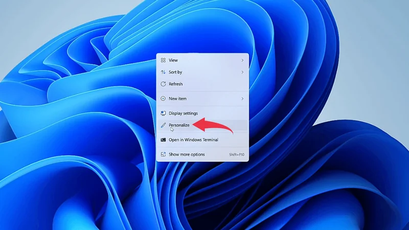 1) In your Windows 11 home screen right click on the mouse, and select the personalize option from the options list shown.
