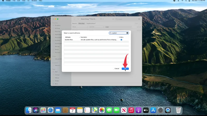4) In the “Contents” drop-down list, select the option “other“, and in the search bar type “system files“. Check the “In Menu” box and click on the ok button.