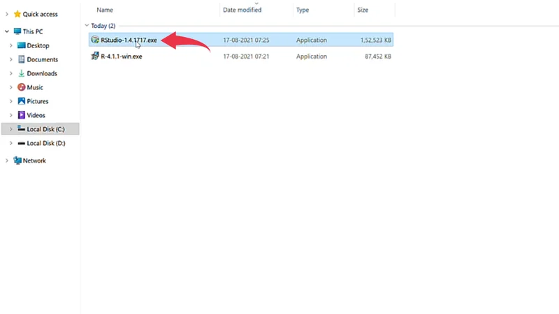 3) Once the download gets finished open it in the folder where it has been downloaded, Double-clickon the file to start the RStudio setup wizard.