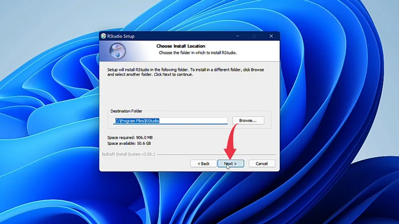 5) Now we have to select the installation location for Rstudio, we’ll stick to the default installation location so click on the Next button.