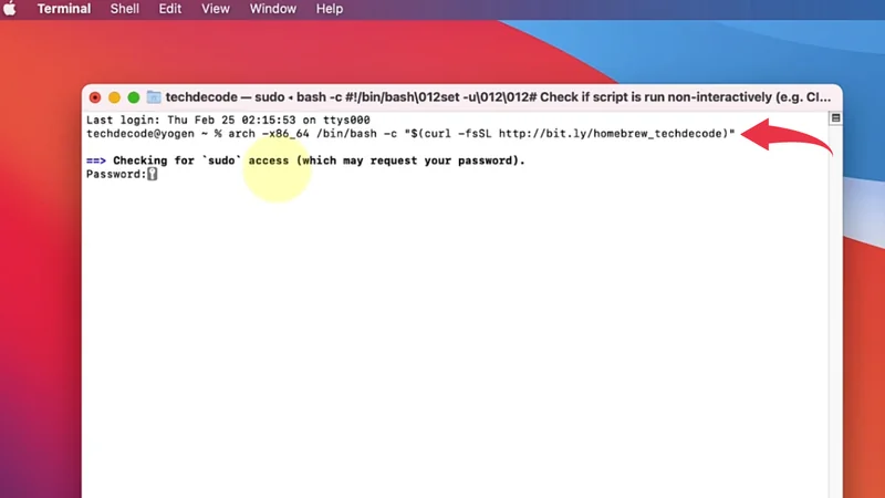 Intel Mac:/bin/bash -c "$(curl -fsSL http://bit.ly/homebrew_techdecode)"