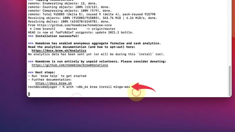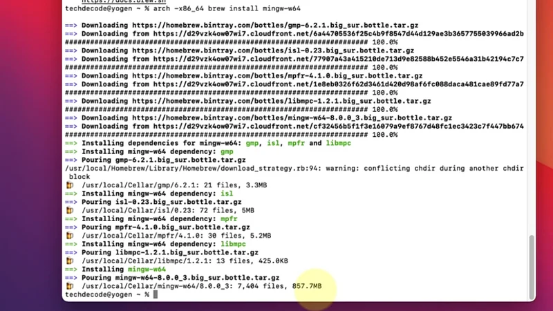 3) Now we’ll install MinGw compiler on your Mac OS, simply paste the below-provided code and press enter, this process may also take some time. There will be a progress bar showing the percentage of download that has been installed.