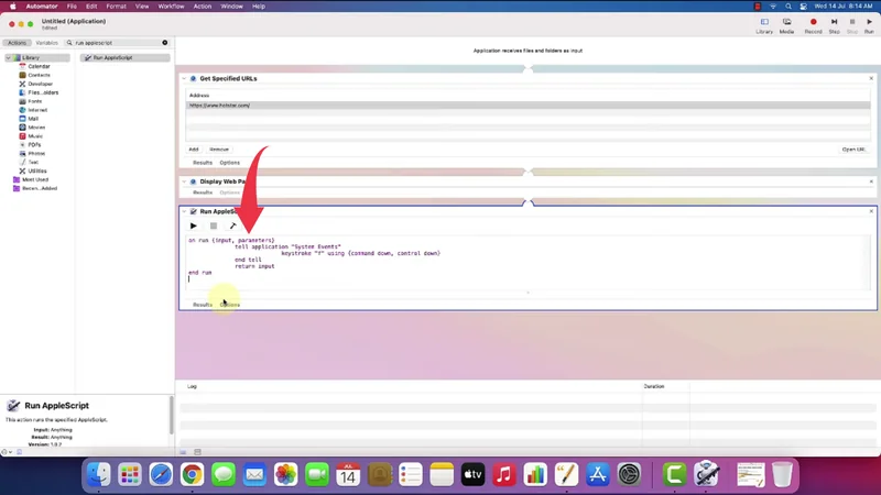 7) Now in the Run Applescript workspace paste the below-provided script, just like shown in the image below.
