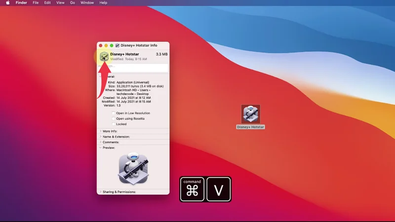 11) Click on the icon next to the name Disney+ Hotstar and press “Cmd+V” to paste the copied image.