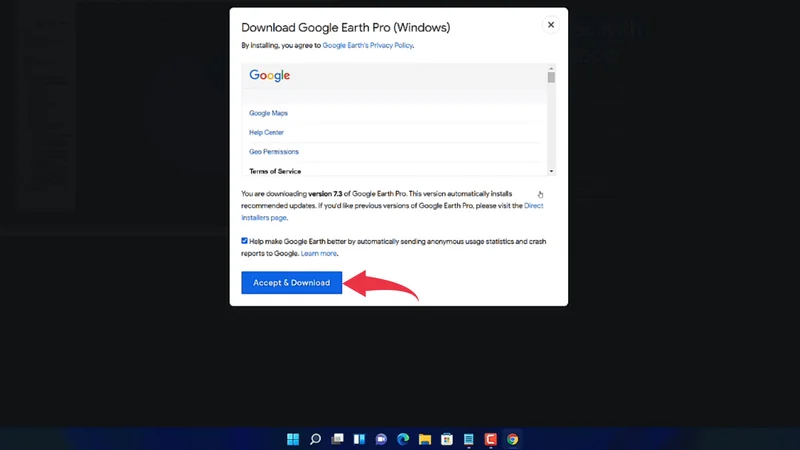 2) next simply check Google Earth’s privacy policy agreement and click on the Accept And Download button.