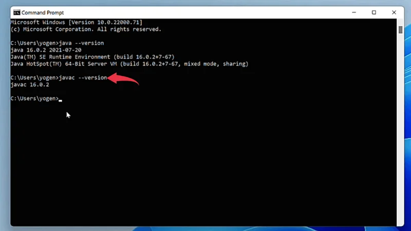 3) After that type javac --version and press enter to check the installed version of the java compiler.