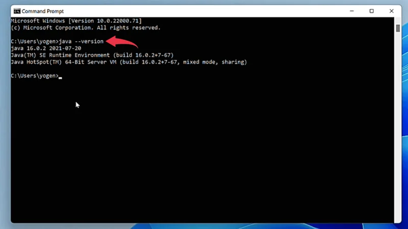 2) In the command prompt type, java --version and press enter to check the installed version of JDK.