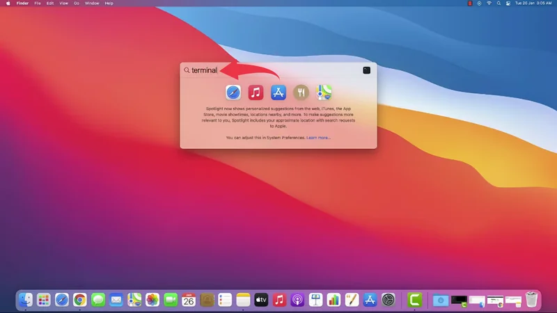 1) Open Up your terminal by pressing “cmd+space”, type “terminal” in the search bar and press enter.