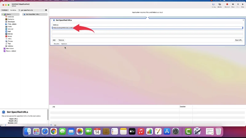 4) In the get specified URLs workspace’s address bar paste https://www.primevideo.com/ link.