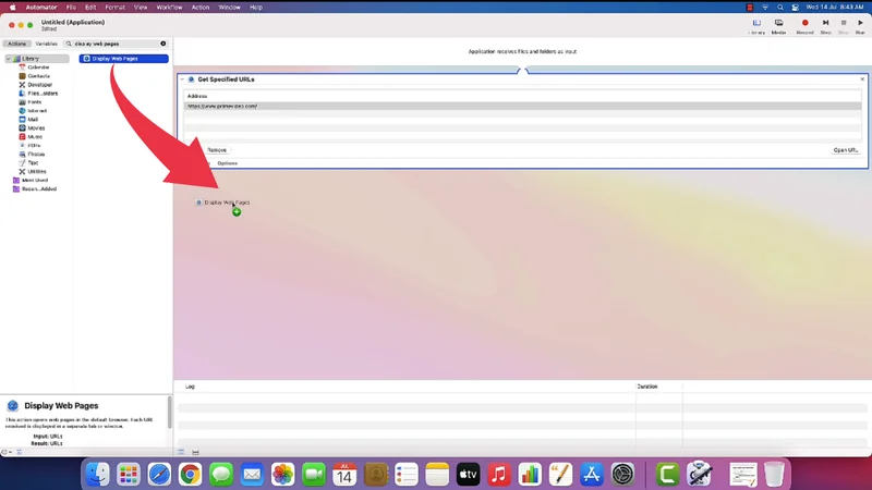 5) Now again in the search bar type “Display web pages” and drag the listed option to workspace as well.