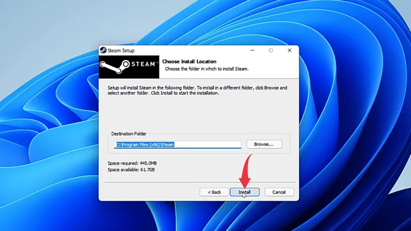 4) Now you’ll be asked to select the installation path for Steam. We won’t change anything here so simply click on the Install button.