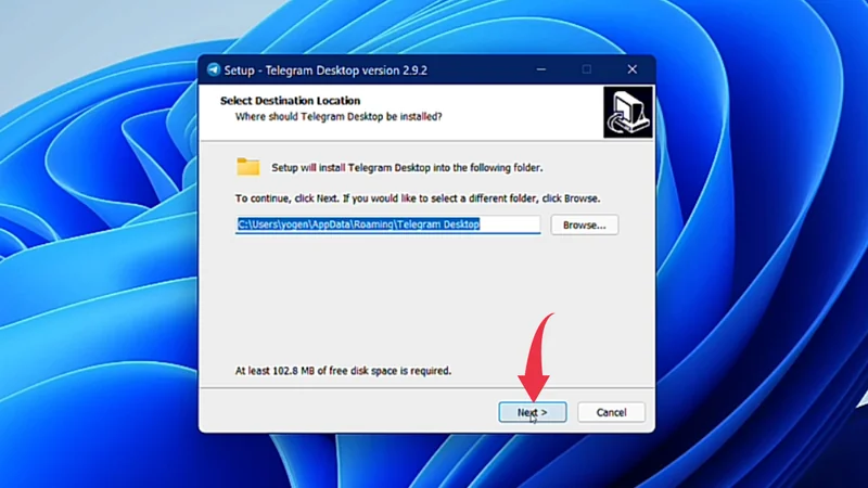 3) Here we have to select the installation location for Telegram, we’ll stick to the default installation location so click on the Next button.