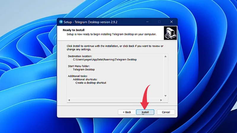 6) In this final step, simply click on the Install button and your Telegram installation process will get started.