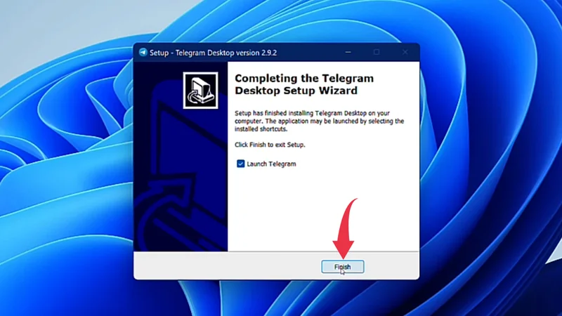 7) Once the installation gets successful click on the Finish button to close the setup wizard and launch Telegram.