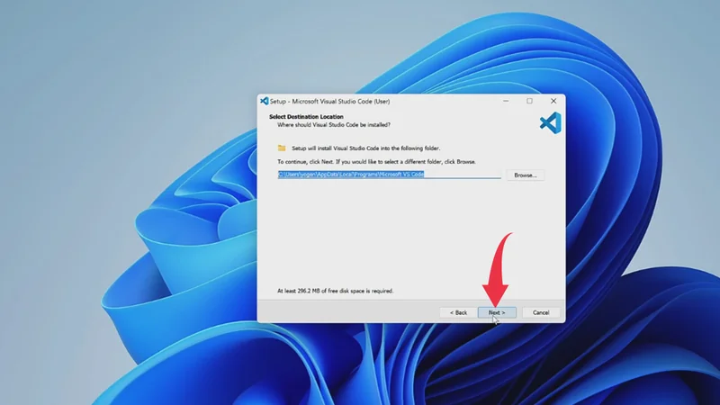 3) You’ll be asked to select the installation folder for Visual Studio Code. Here we will go with the default installation location so simply click next.
