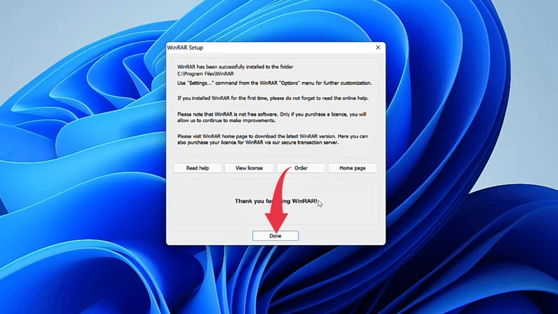4) In this final window, click on the Done button and you’re all done installing Winrar in Windows 11.