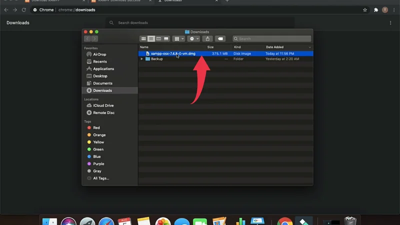2) Once the download gets finished open it up in the folder where it has been downloaded and double click on the downloaded “.dmg” file to expand the xampp file.