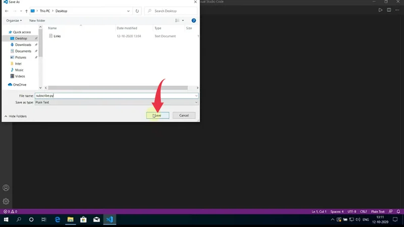 3) Create a New File in visual studio code.