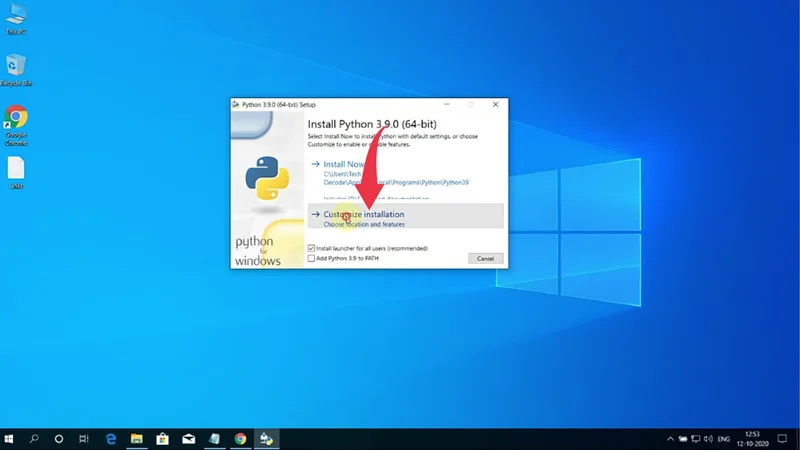 3) Next, a python installation wizard will open, there click on the “Custom Installation” button.