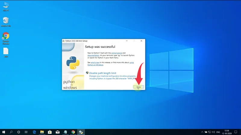 7) Now your Python installation will begin, once it gets completed click on the close button.