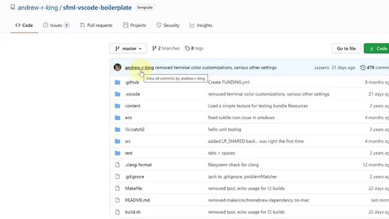 1) Firstly we will download the Visual Studio code boilerplate for SFML. Follow the below provided GitHub link to download the sfml vs code boilerplate.