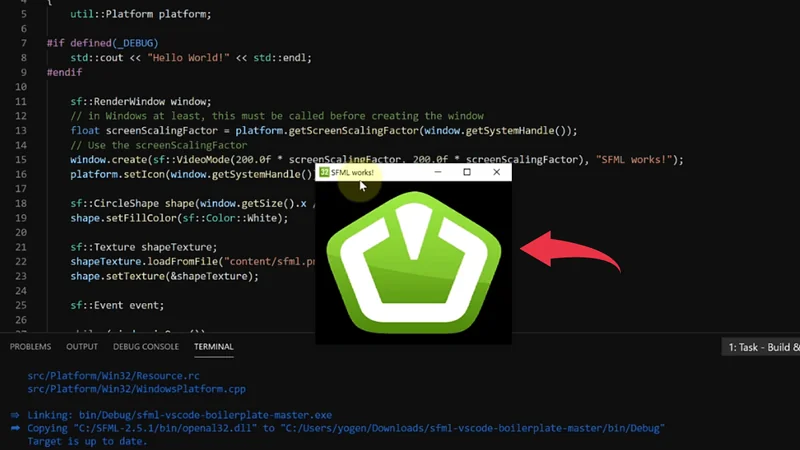 If you’re finding it hard running SFML programs in Visual Studio Code on your Windows machine then you can refer to the below video for a complete guide.