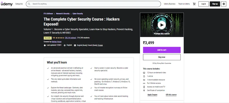 The Complete Cyber Security Course is one of the most profound courses for cyber security available on udemy. This course is designed to give students a better perspective of real-world challenges. The instructor of this course, Mr. Nathan House, is CEO of StationX and a cyber security expert with more than 25 years of working experience in this domain. This course is designed for beginners, but advanced topics have been covered very intricately as well.