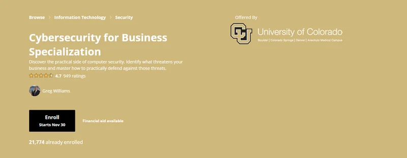 Click Here To Enroll in Cybersecurity for Business Specialization with an additional discount.